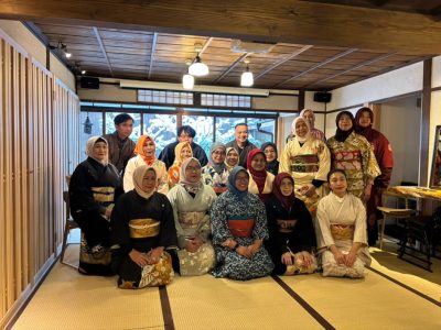 Pada hari kedua, peserta mengikuti kegiatan budaya di Kominka Tsukamoto Tei, Kyoto. Dalam kegiatan ini, peserta berkesempatan mempelajari cara mengenakan kimono, menyaksikan pertunjukan Taiko, serta mendapatkan pengenalan budaya Jepang secara langsung yang dipandu oleh Nabeshima, Direktur Convi Co., Ltd. Pengalaman tersebut memberikan pemahaman kontekstual mengenai nilai-nilai budaya dan etos kerja masyarakat Jepang yang relevan dengan pelaksanaan program internship bagi mahasiswa Indonesia.
