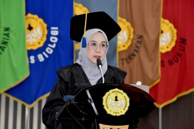“Pengukuhan ini sungguh bukan sekadar pencapaian pribadi, melainkan juga tonggak penting dalam perjalanan institusi ini untuk terus berkontribusi bagi ilmu pengetahuan, dan lebih dari itu, sejatinya semua kembali untuk kemaslahatan masyarakat,” ujar Rektor.
