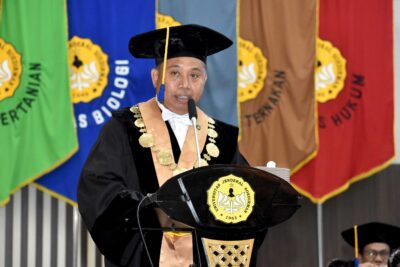 “Melalui riset, pengabdian, dan inovasi para profesor, saya yakin kita bisa menjembatani kesenjangan antara ilmu dan praktik, antara pusat dan daerah, antara kampus dan masyarakat. Karena pada akhirnya, keilmuan yang tidak berpihak pada kesejahteraan bersama adalah keilmuan yang kehilangan arah,” imbuhnya.